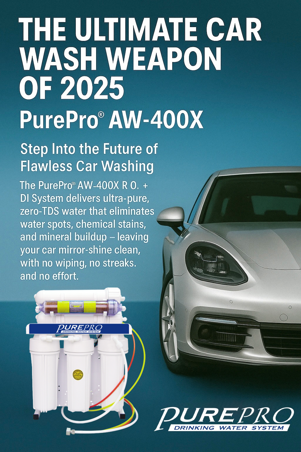 The AW-400X is a professional-grade ultra-pure water system specifically engineered for automotive and professional detailing industries.