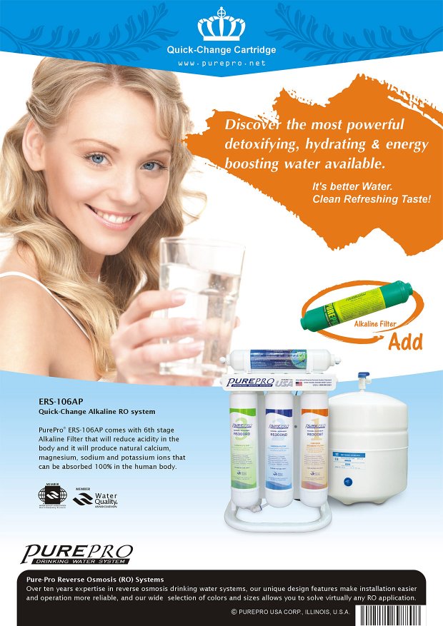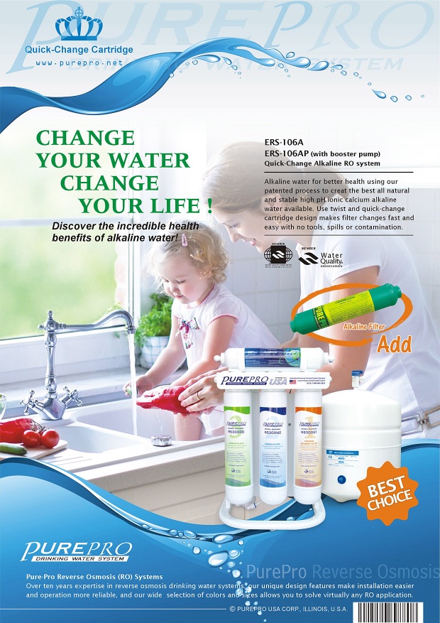 RS-106A-P is a super quality 6 stage filter system comes with PurePro® Alkaline Filter, to offer the very best in water filtration and balanced pH water for drinking. Using reverse osmosis technologies with alkaline filter can actually remove 99.99% of contaminants and provide people with healthy alkaline drinking water.