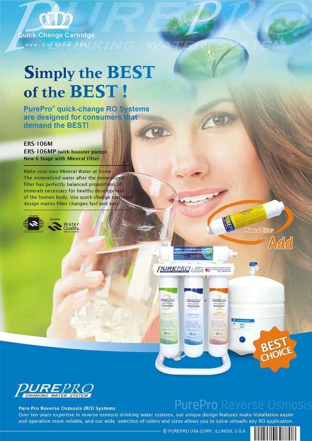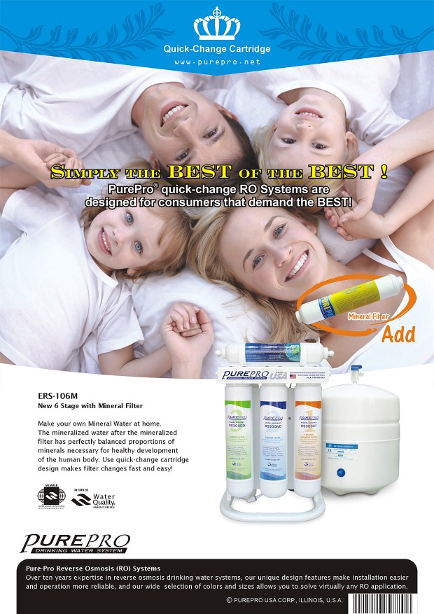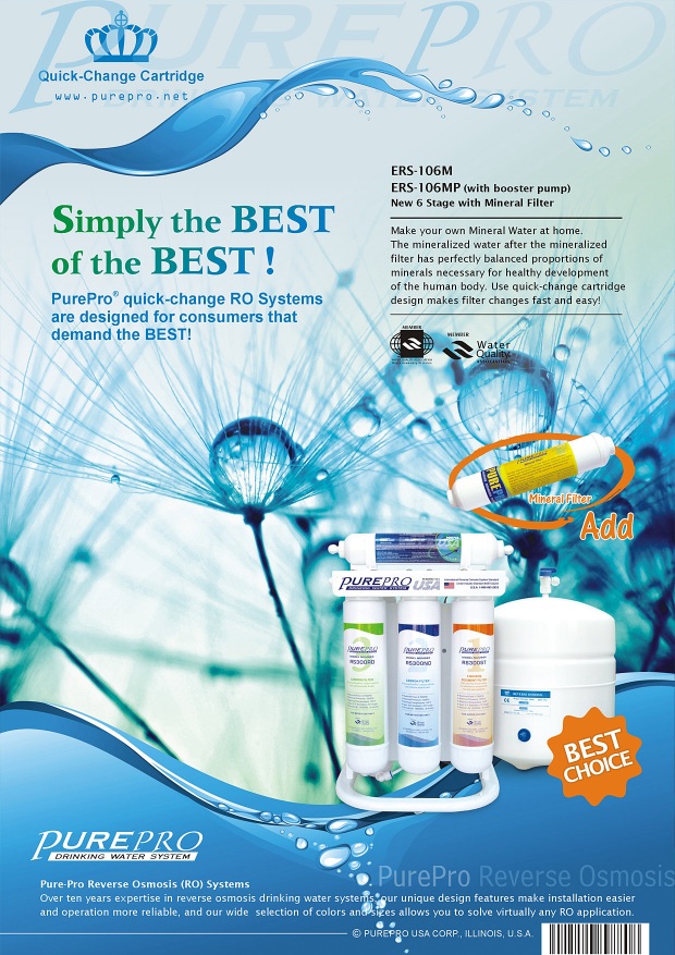 This revolutionary new PurePro 6 stage system uses Reverse Osmosis, Mineral Filter and Carbon Filtration to put refreshing, clean water at your fingertips. No other system available anywhere can give you all three kinds of purification in a system that is so simple.