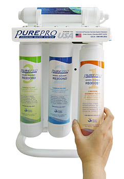 PurePro® Quick-Change RO system uses the most advanced water treatment technology: "Reverse Osmosis". Reverse Osmosis (RO) is recognized as one of the best available technologies for producing best quality drinking water. It's also the same method used by many bottled water companies to make safe and great tasting water.  No other home water treatment system can offer you as much protection and reliability.