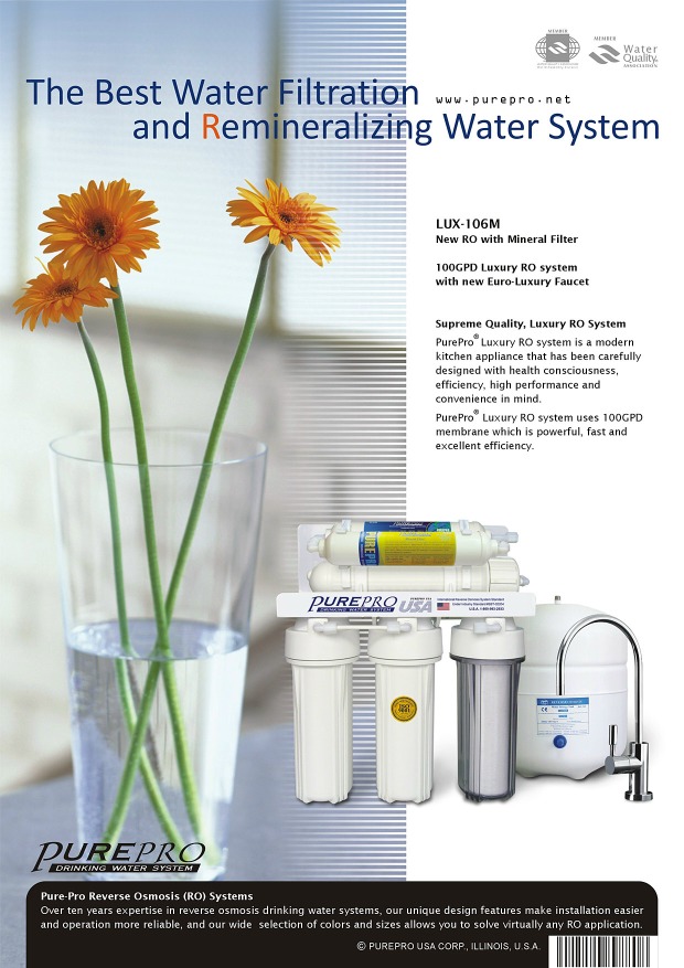 PurePro® Luxury RO system includes new best Euro-Luxury faucet which is the most beautiful, most elegant design in the world. This faucet can make an important aesthetic statement and can be an essential part of the style of your modern kitchen. (Lead free, NSF certificated)  Product Catalog