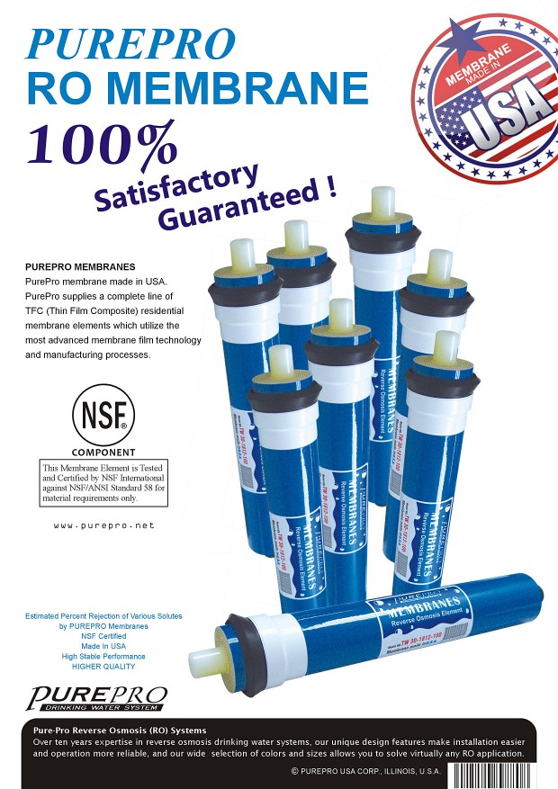 PurePro is proud to introduce our newly designed residential membrane elements and our newly developed 200GPD TFC membrane and Nanofiltration membranes.