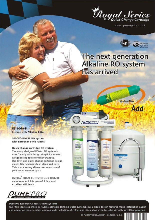 RS-106A-P is a super quality 6 stage filter system comes with PurePro® Alkaline Filter, to offer the very best in water filtration and balanced pH water for drinking. Using reverse osmosis technologies with alkaline filter can actually remove 99.99% of contaminants and provide people with healthy alkaline drinking water.