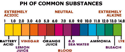 pH is a method to measure the acid/alkaline value of a given substance. The chart below shows a typical range of Ph values, with 7 being neutral.